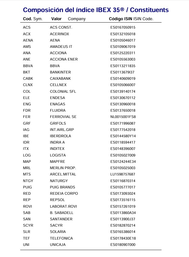 Como ya hemos dicho, es el principal índice de referencia de la Bolsa española y está elaborado por la empresa Bolsas y Mercados Españoles o BME que, curiosamente, estaba presente dentro del índice hasta que el grupo suizo SIX Group tomó el 100% de su accionariado en septiembre de 2020 y la excluyó oficialmente de negociación.